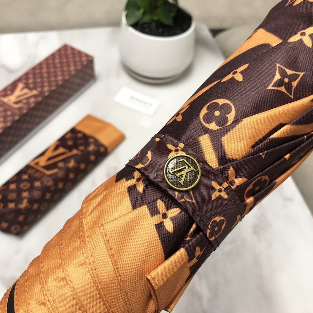 Brown Tri-fold Umbrella Sun Umbrella UV Protection Lightweight Portable Umbrella