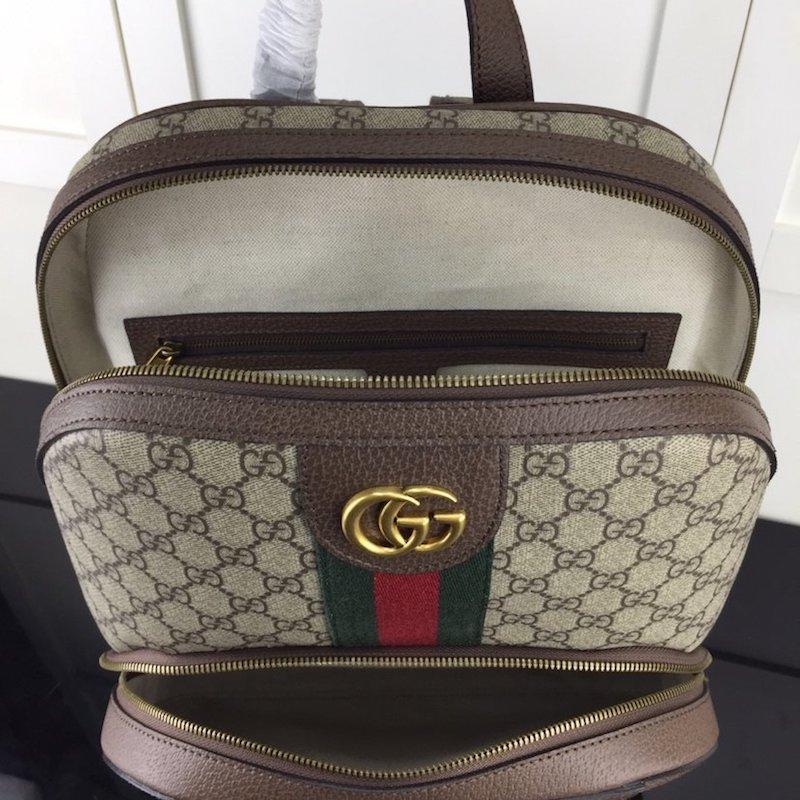 The backpack continues to be an important silhouette in the world, offered in a variety of sizes and interpretations. Part of the ever-expanding world of Ophidia, it's crafted in GG Supreme canvas with textured leather trim. The inlaid green and red Web detail and Double G hardware are steeped in the House's rich history, referencing symbols incorporated in collections since the '50s.