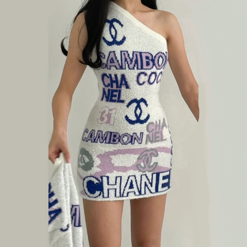 Fashionable diagonal shoulder sexy knit dress PD10052416