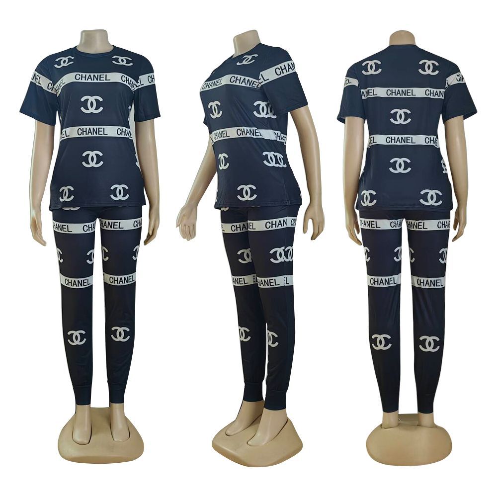 Fashionable Solid Color Trendy Casual Printed Two-piece 1024061901