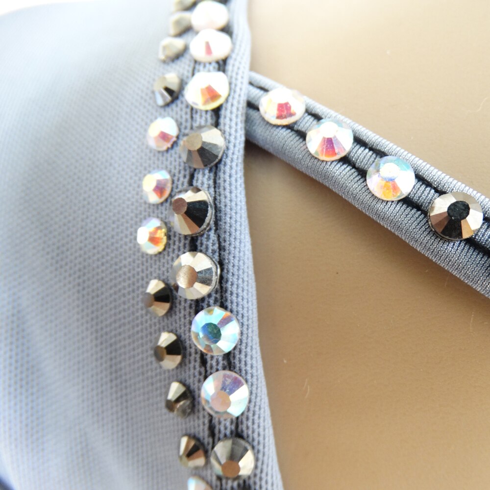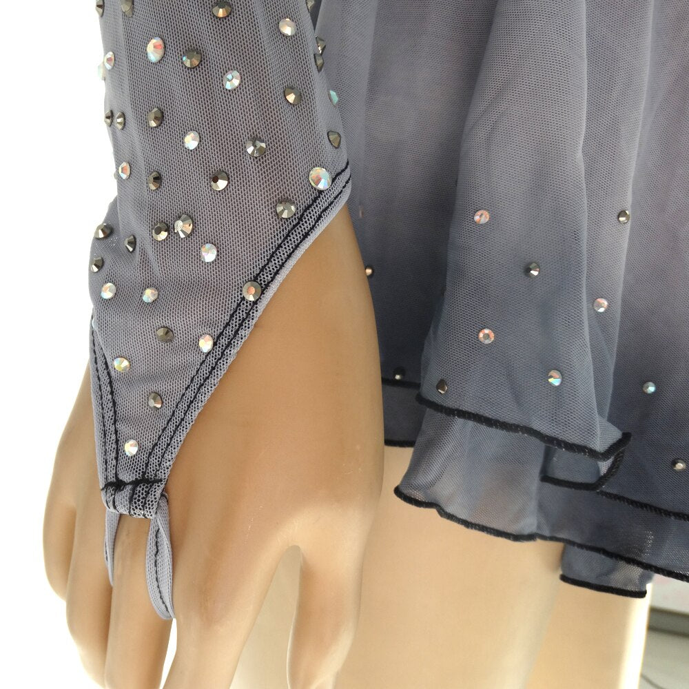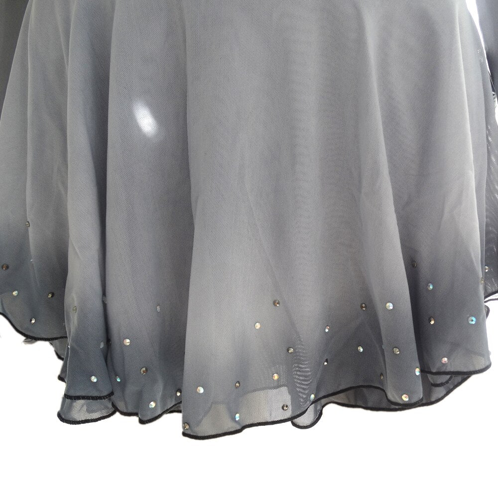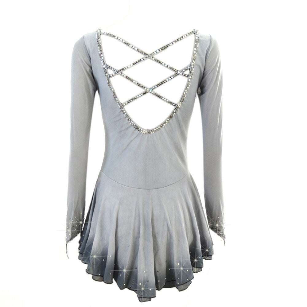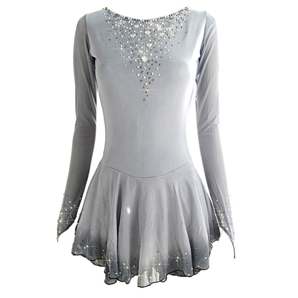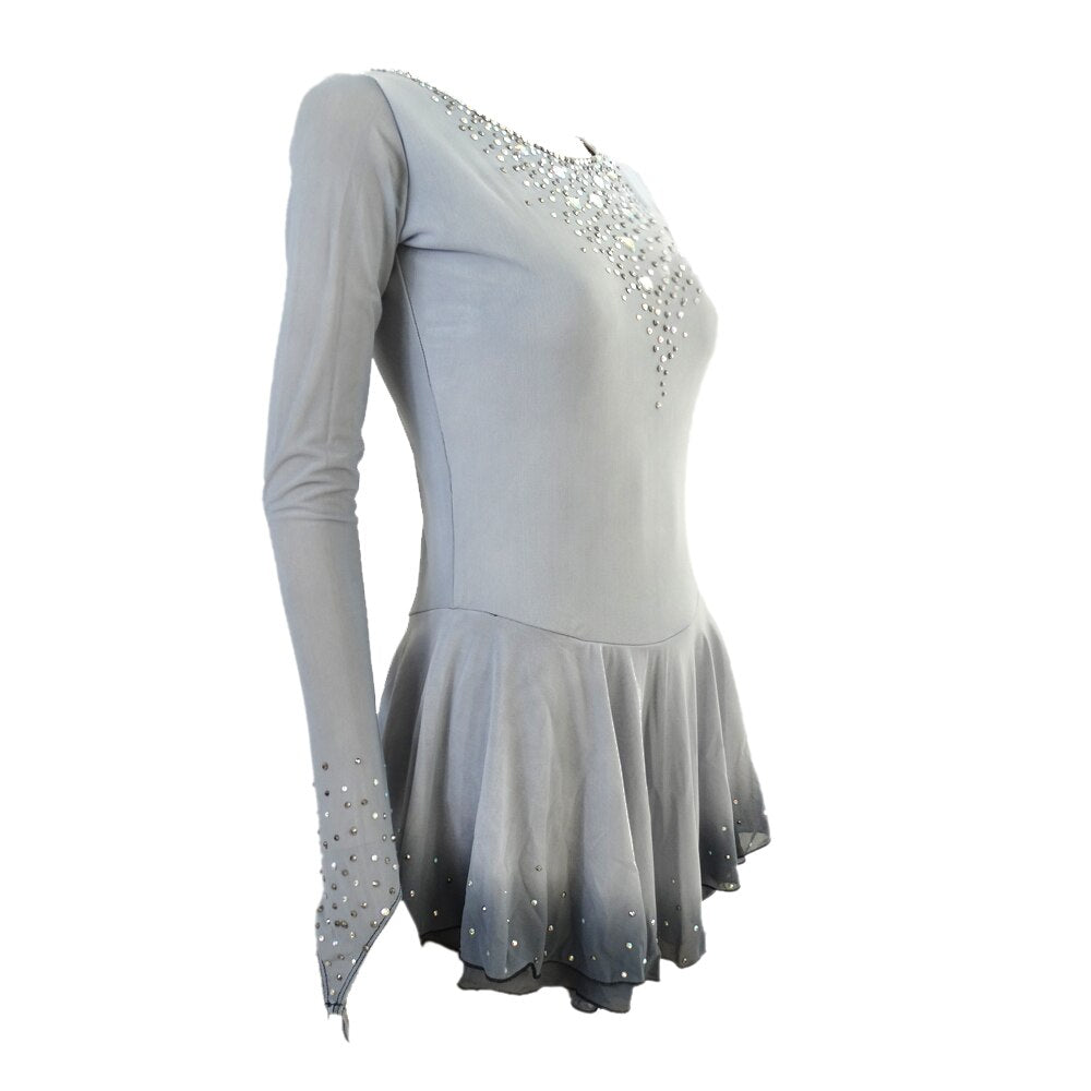 ❤ Features:This LIUHUO skating dress exudes understated elegance. It is long - sleeved and comes in a soft gray color. The neckline is adorned with numerous sparkling rhinestones, meticulously arranged to form an eye - catching pattern that adds a touch of glamour. Smaller rhinestones are also scattered along the sleeves and the hem of the flared skirt, creating a subtle yet charming shimmer. The smooth fabric and the gentle flare of the skirt not only enhance the aesthetic appeal but also allow for unrestricted movement, making it an ideal choice for skating performances.