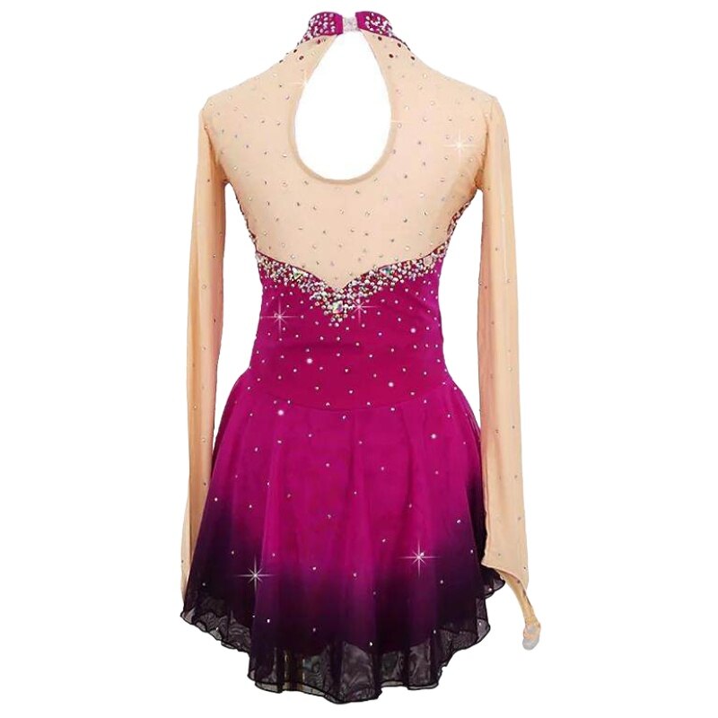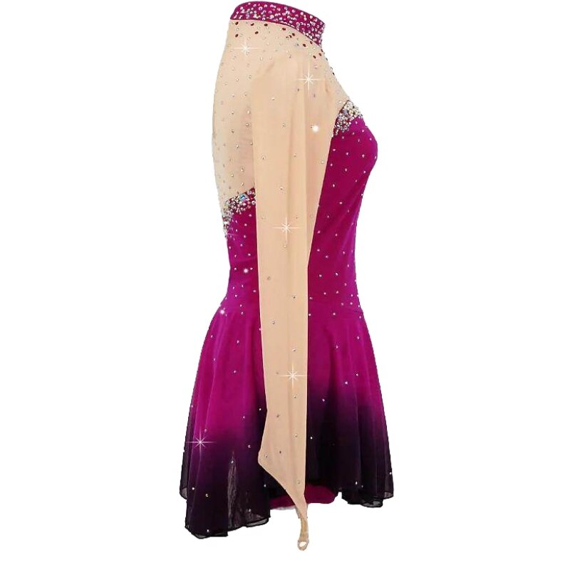 The fabric is mainly made of the newest pattern and quality elastic velour, high elasticity spandex, as well as the precise binding skill and the decoration diamond or the lace pattern. The fabric chosen is warmth kept, color fastness, sweat absorbed and color bright; brand new custom made ice skating dress with matching hair scrunchie included. All dresses have the underpants are attached.