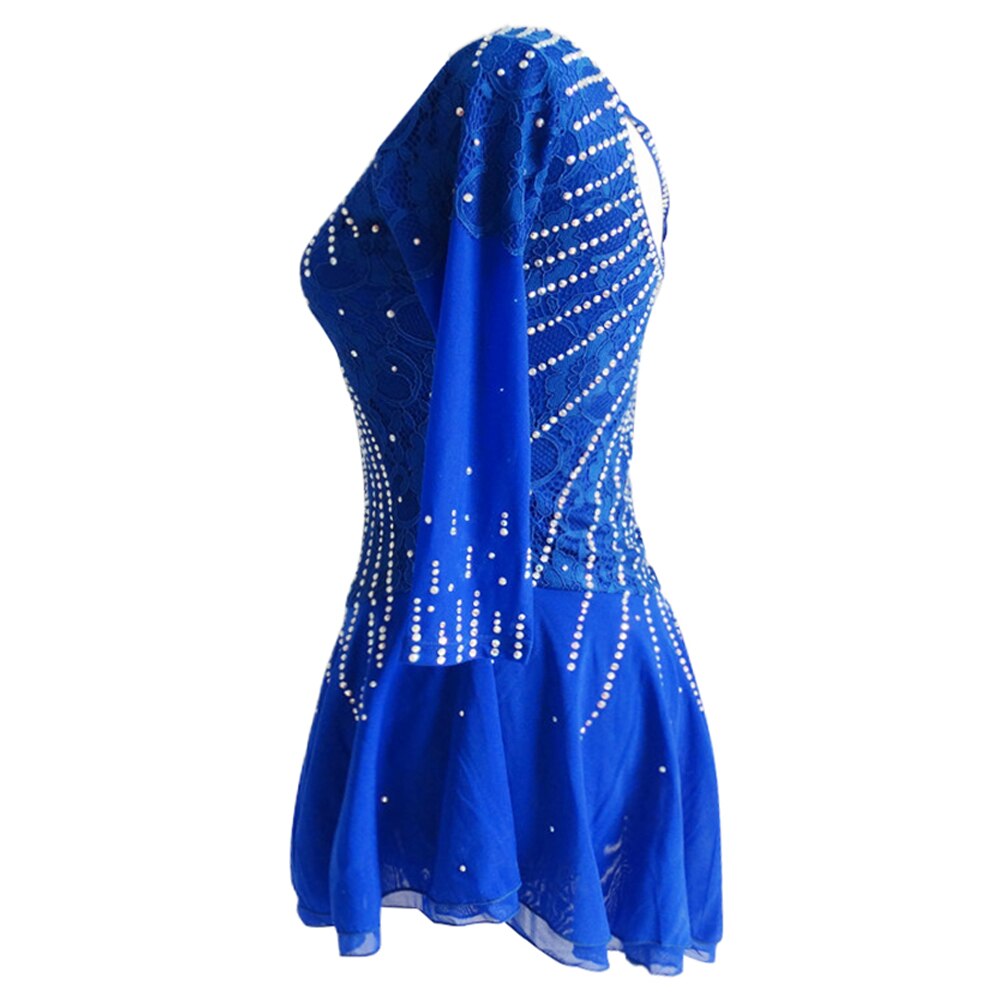 The fabric is mainly made of the newest pattern and quality elastic velour, high elasticity spandex, as well as the precise binding skill and the decoration diamond or the lace pattern. The fabric chosen is warmth kept, color fastness, sweat absorbed and color bright; brand new custom made ice skating dress with matching hair scrunchie included. All dresses have the underpants are attached.