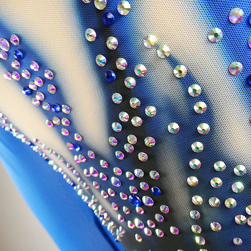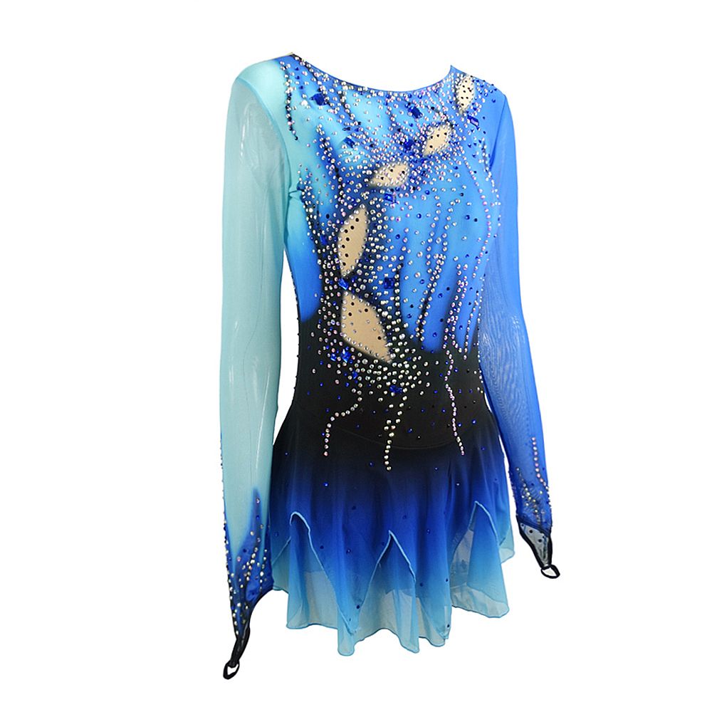 ❤ Features:This LIUHUO figure skating dress showcases a blue - gradient color scheme. It’s crafted from high - stretch fabric for a flexible fit. The design features sheer sleeves, eye - catching cut - out details, and is lavishly adorned with sparkling crystals. Customizable for women and girls, it blends style and performance for skating routines.