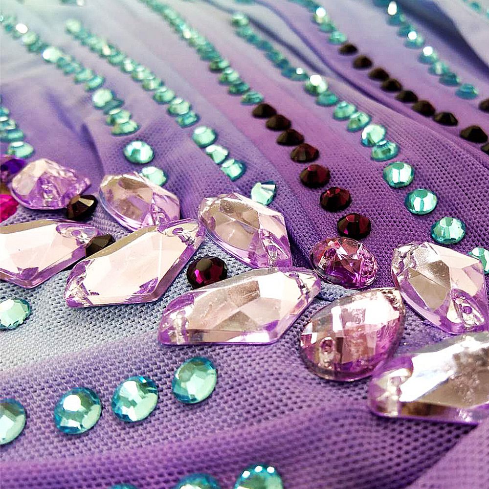 The dress was made by high quality spandex,with plenty of diamonds and  gem of acrylic. Mostly we sell the dress with crystals of  the Middle East.