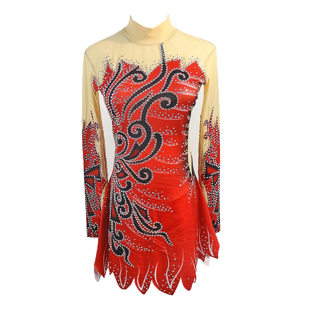 The fabric is mainly made of the newest pattern and quality elastic velour, high elasticity spandex, as well as the precise binding skill and the decoration diamond or the lace pattern. The fabric chosen is warmth kept, color fastness, sweat absorbed and color bright; brand new custom made ice skating dress with matching hair scrunchie included. All dresses have the underpants are attached.