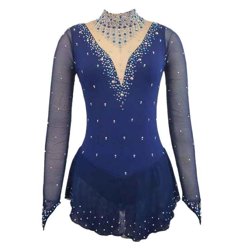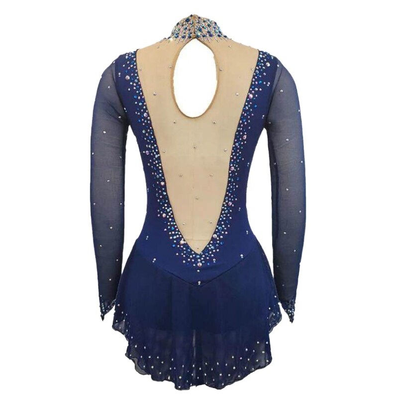 ❤ Features:This LIUHUO skating dress is an epitome of elegance and sparkle. In a deep navy blue hue, it exudes a sense of sophistication. The dress features long, sheer sleeves that add a delicate and graceful touch.