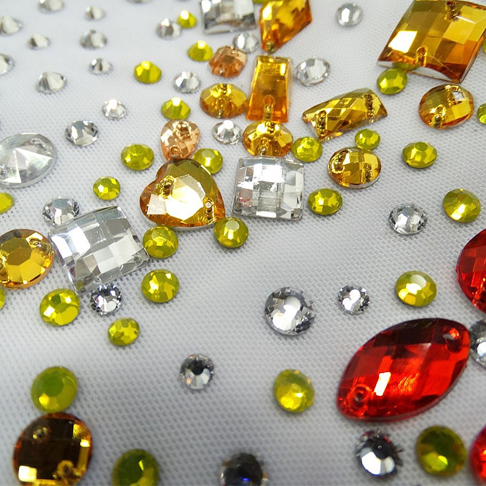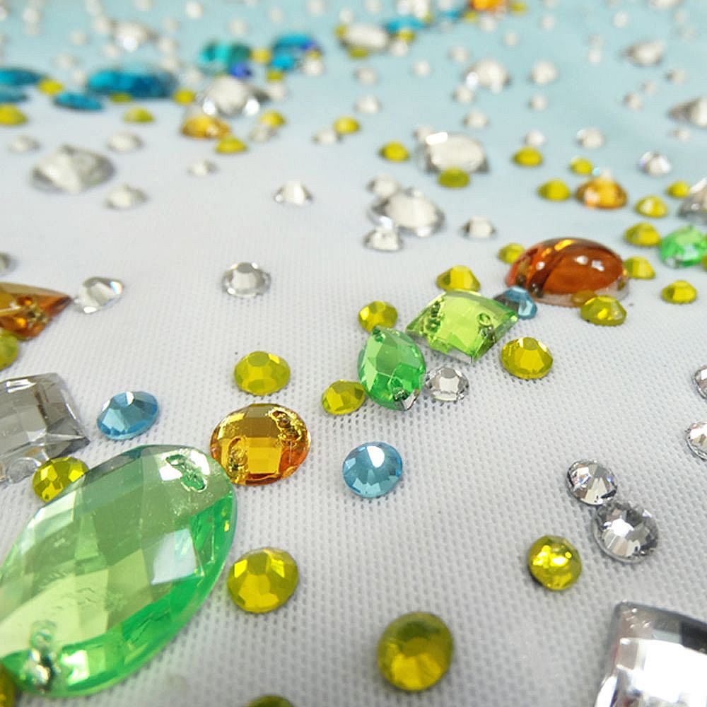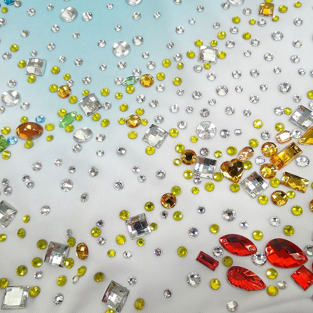 The dress was made by high quality spandex,with plenty of diamonds and  gem of acrylic. Mostly we sell the dress with crystals of  the Middle East.