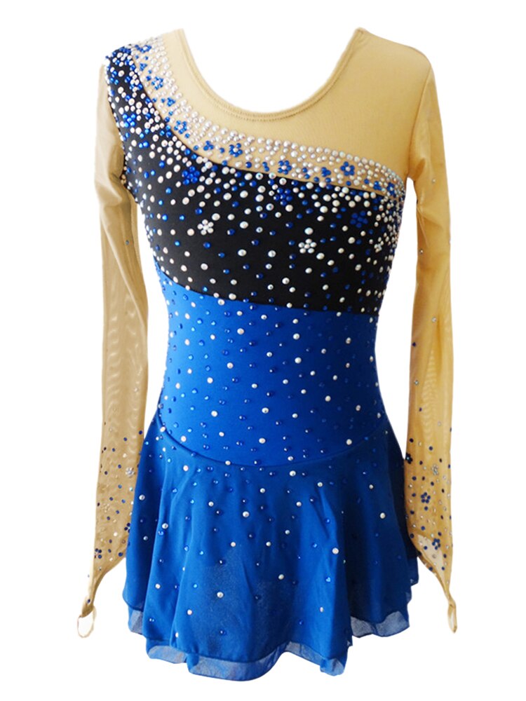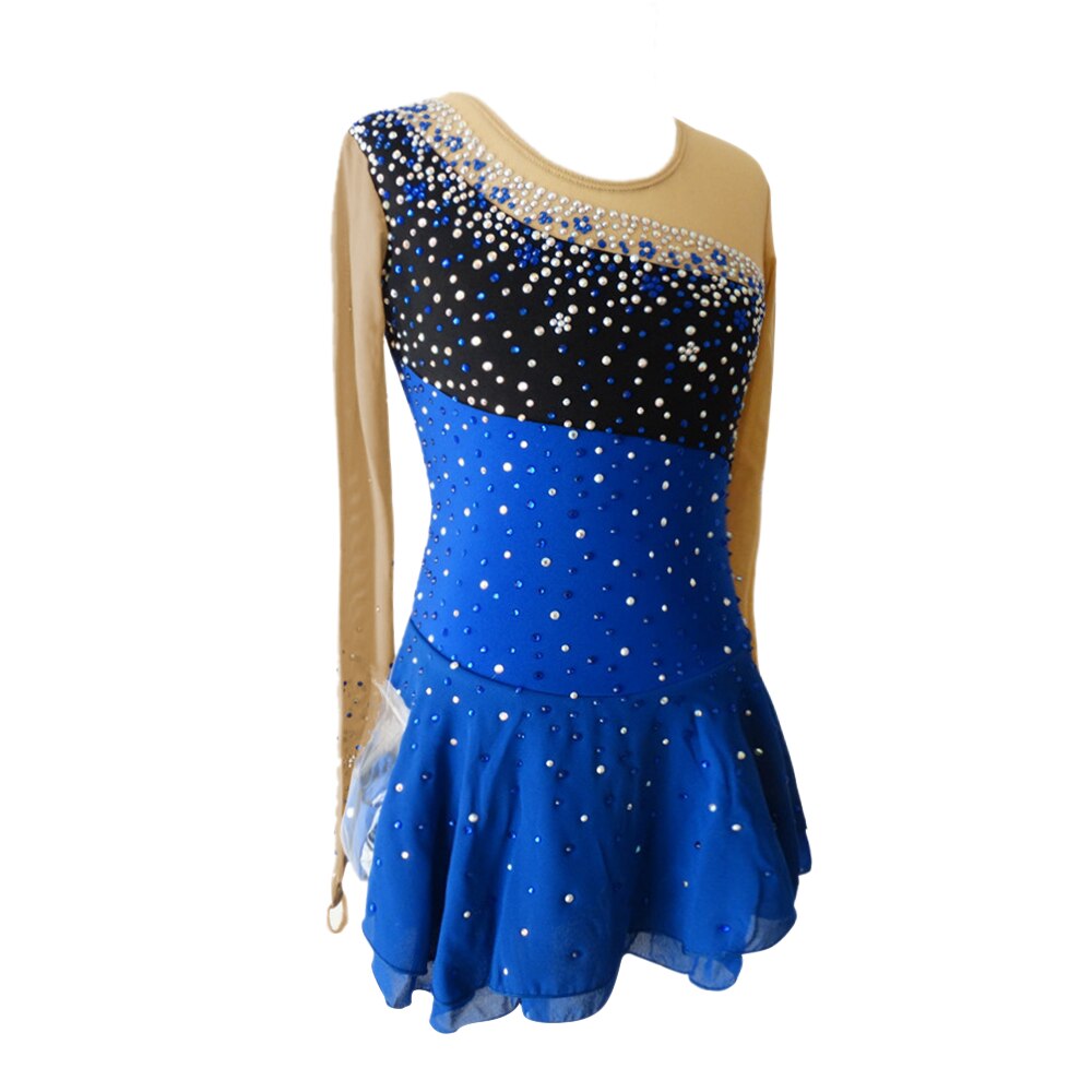 The fabric is mainly made of the newest pattern and quality elastic velour, high elasticity spandex, as well as the precise binding skill and the decoration diamond or the lace pattern. The fabric chosen is warmth kept, color fastness, sweat absorbed and color bright; brand new custom made ice skating dress with matching hair scrunchie included. All dresses have the underpants are attached.