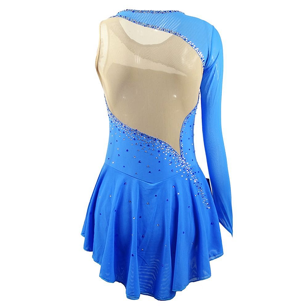 The fabric is mainly made of the newest pattern and quality elastic velour, high elasticity spandex, as well as the precise binding skill and the decoration diamond or the lace pattern. The fabric chosen is warmth kept, color fastness, sweat absorbed and color bright; brand new custom made ice skating dress with matching hair scrunchie included. All dresses have the underpants are attached.