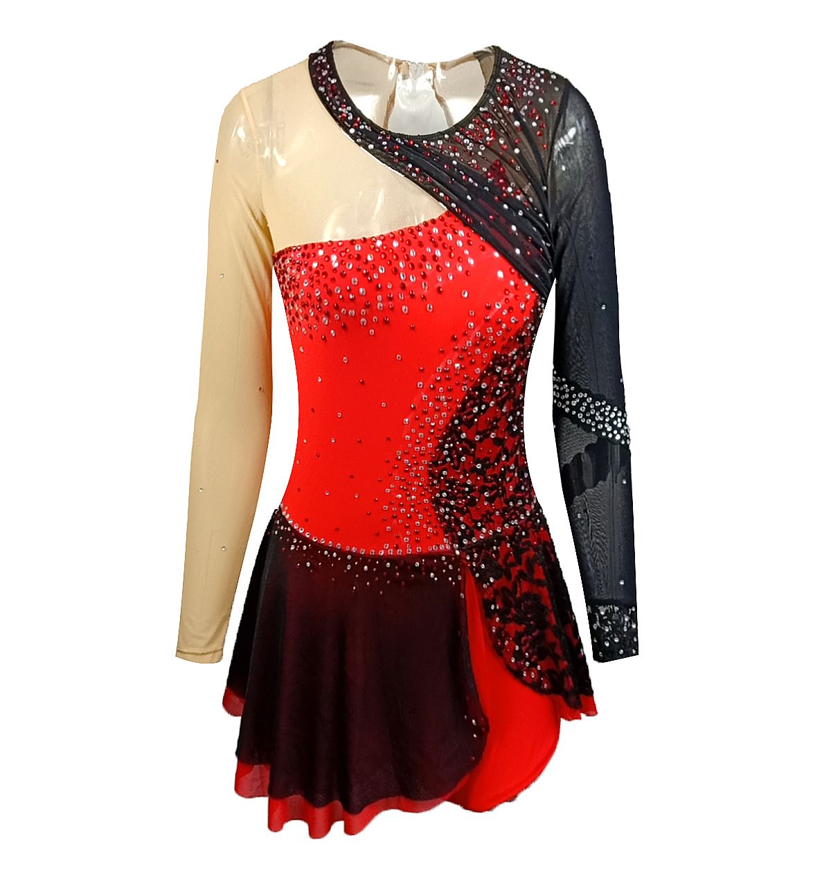 The fabric is mainly made of the newest pattern and quality elastic velour, high elasticity spandex, as well as the precise binding skill and the decoration diamond or the lace pattern. The fabric chosen is warmth kept, color fastness, sweat absorbed and color bright; brand new custom made ice skating dress with matching hair scrunchie included. All dresses have the underpants are attached.
