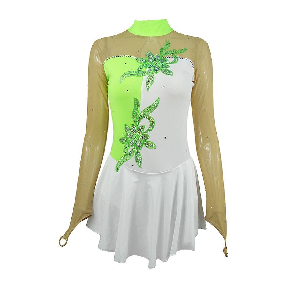 The fabric is mainly made of the newest pattern and quality elastic velour, high elasticity spandex, as well as the precise binding skill and the decoration diamond or the lace pattern. The fabric chosen is warmth kept, color fastness, sweat absorbed and color bright; brand new custom made ice skating dress with matching hair scrunchie included. All dresses have the underpants are attached.