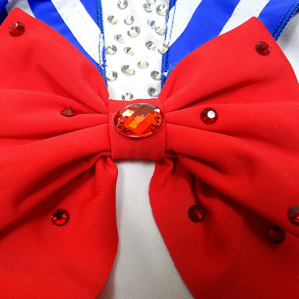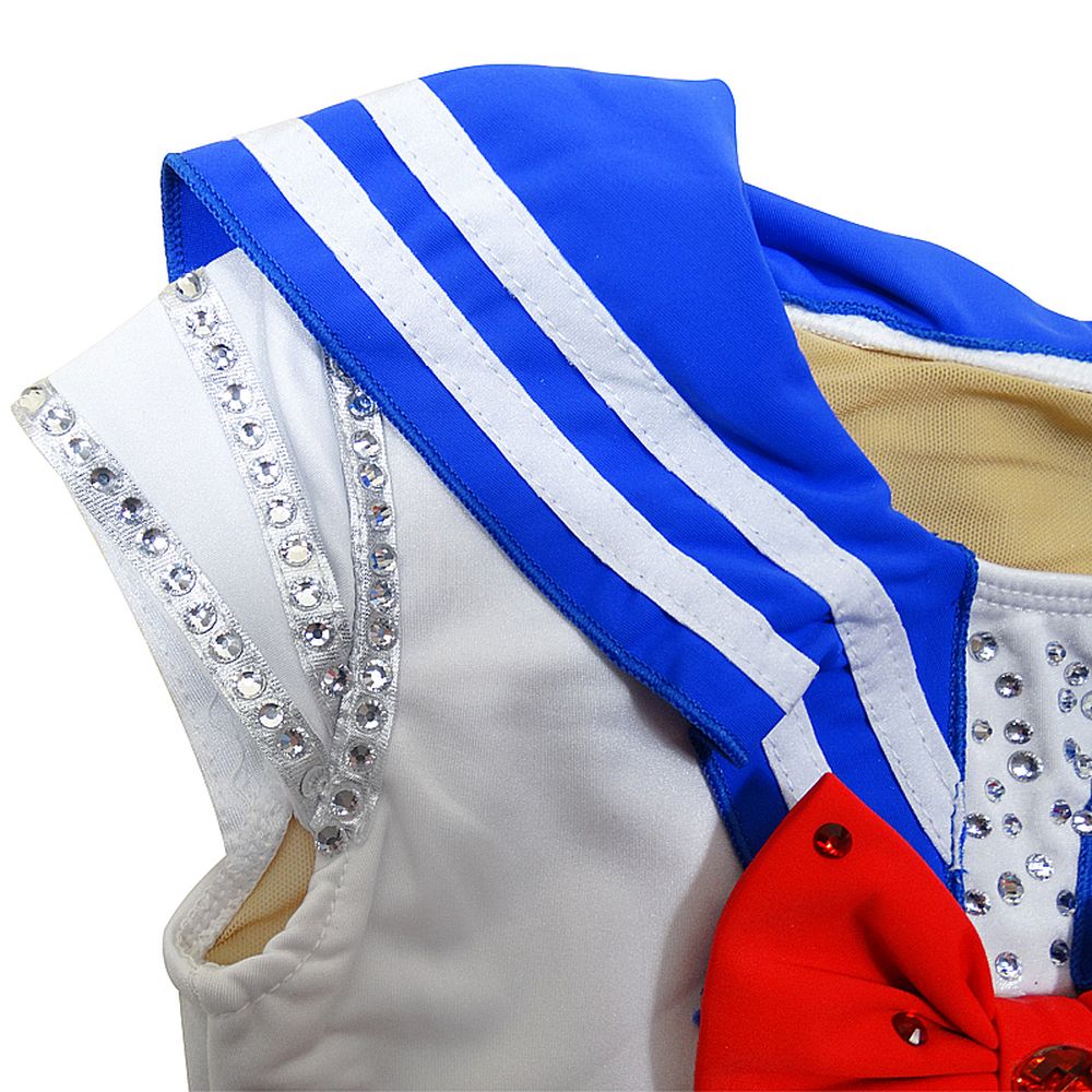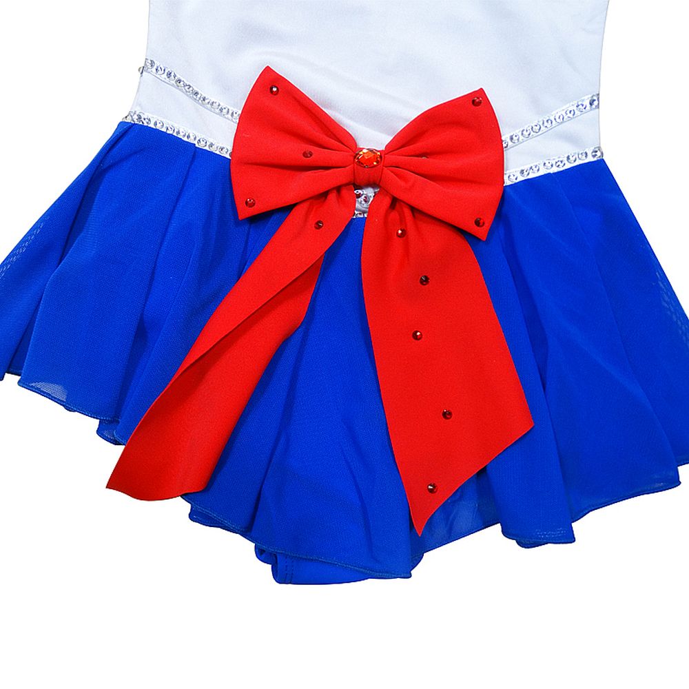 ❤ Features:This LIUHUO figure skating dress features a classic sailor - style design in white and blue. It has a navy - blue collar with white stripes, short sleeves adorned with sparkling sequins, and a vibrant red bow at the chest. The flared blue skirt adds a playful touch, while the high - stretch fabric ensures a comfortable and flexible fit. Customizable for women and girls, it combines cute aesthetics with performance - ready functionality.