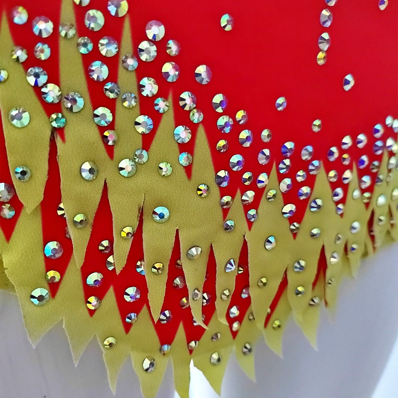 The dress was made by high quality spandex,with plenty of diamonds and gem of acrylic. Mostly we sell the dress with crystals of the Middle East.