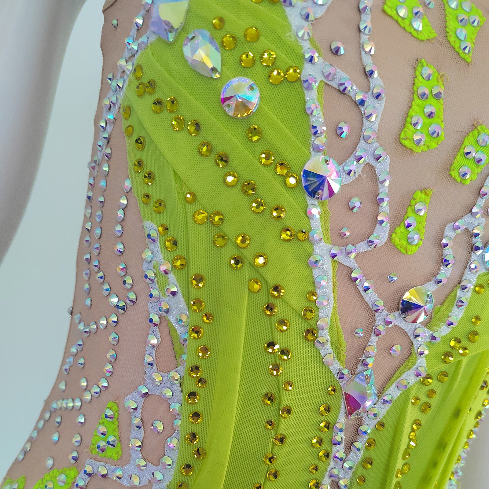The dress was made by high quality spandex,with plenty of diamonds and gem of acrylic. Mostly we sell the dress with crystals of the Middle East.