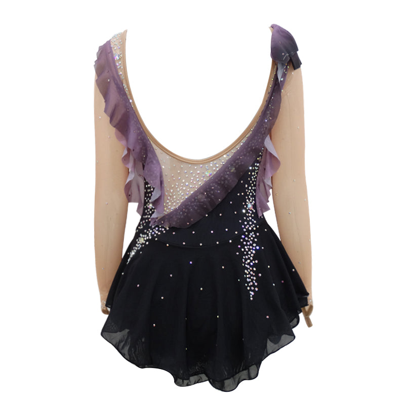 The fabric is mainly made of the newest pattern and quality elastic velour, high elasticity spandex, as well as the precise binding skill and the decoration diamond or the lace pattern. The fabric chosen is warmth kept, color fastness, sweat absorbed and color bright; brand new custom made ice skating dress with matching hair scrunchie included. All dresses have the underpants are attached.