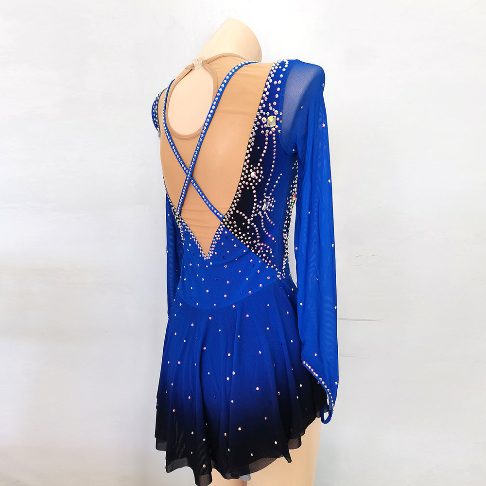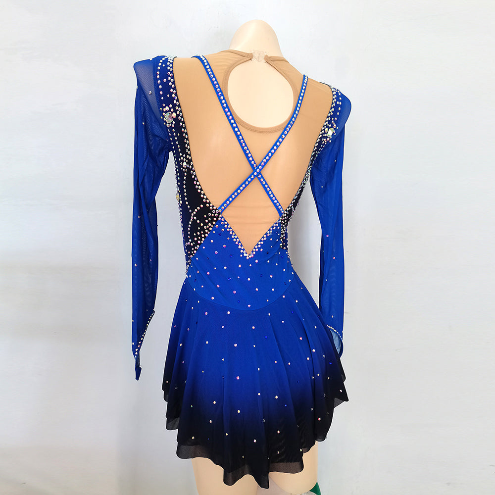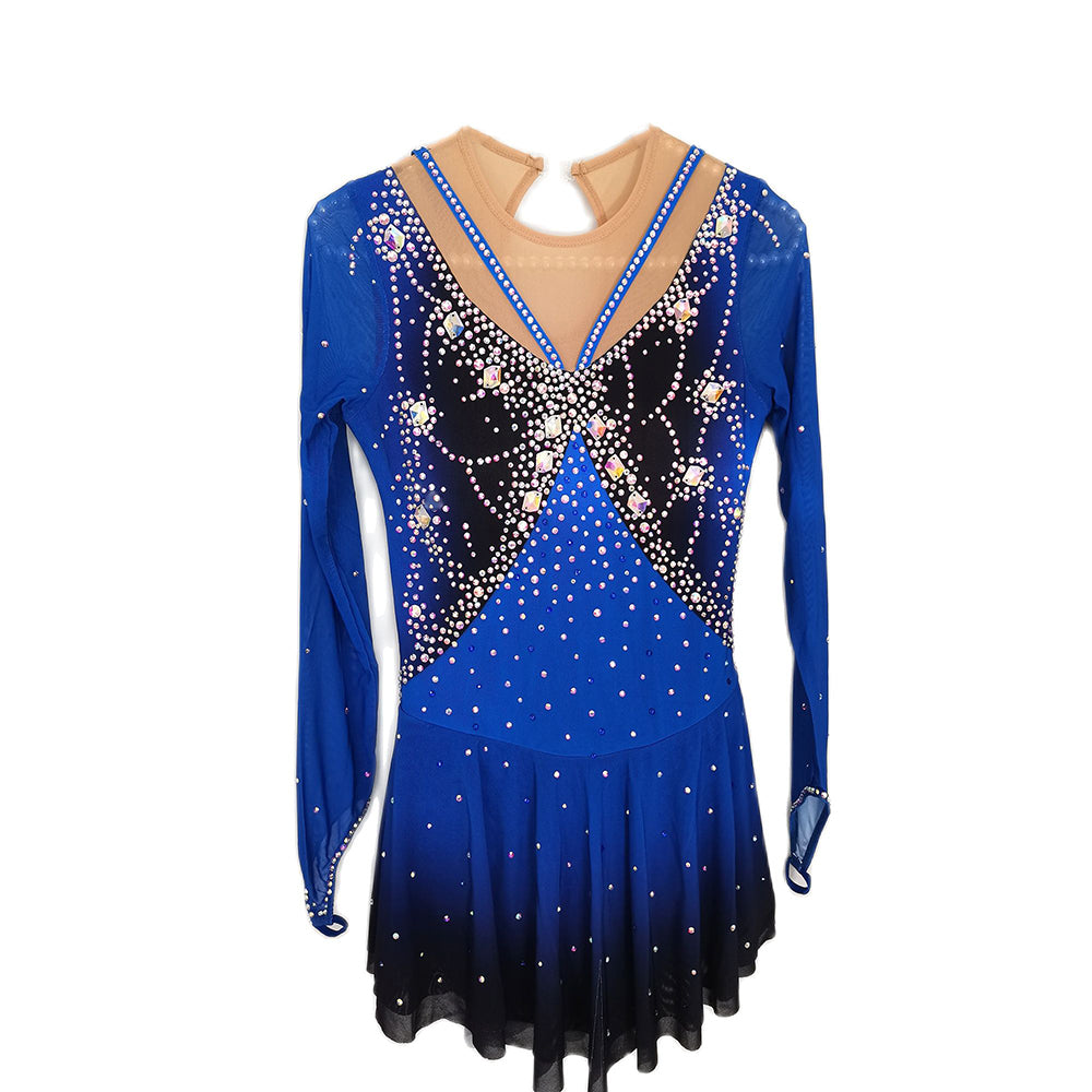 ❤ Features:This LIUHUO figure - skating dress is a captivating ensemble. Dominated by a rich blue hue with a gradient effect from dark to light blue, it exudes elegance. The long - sleeved design features sheer fabric, adding a delicate touch.
