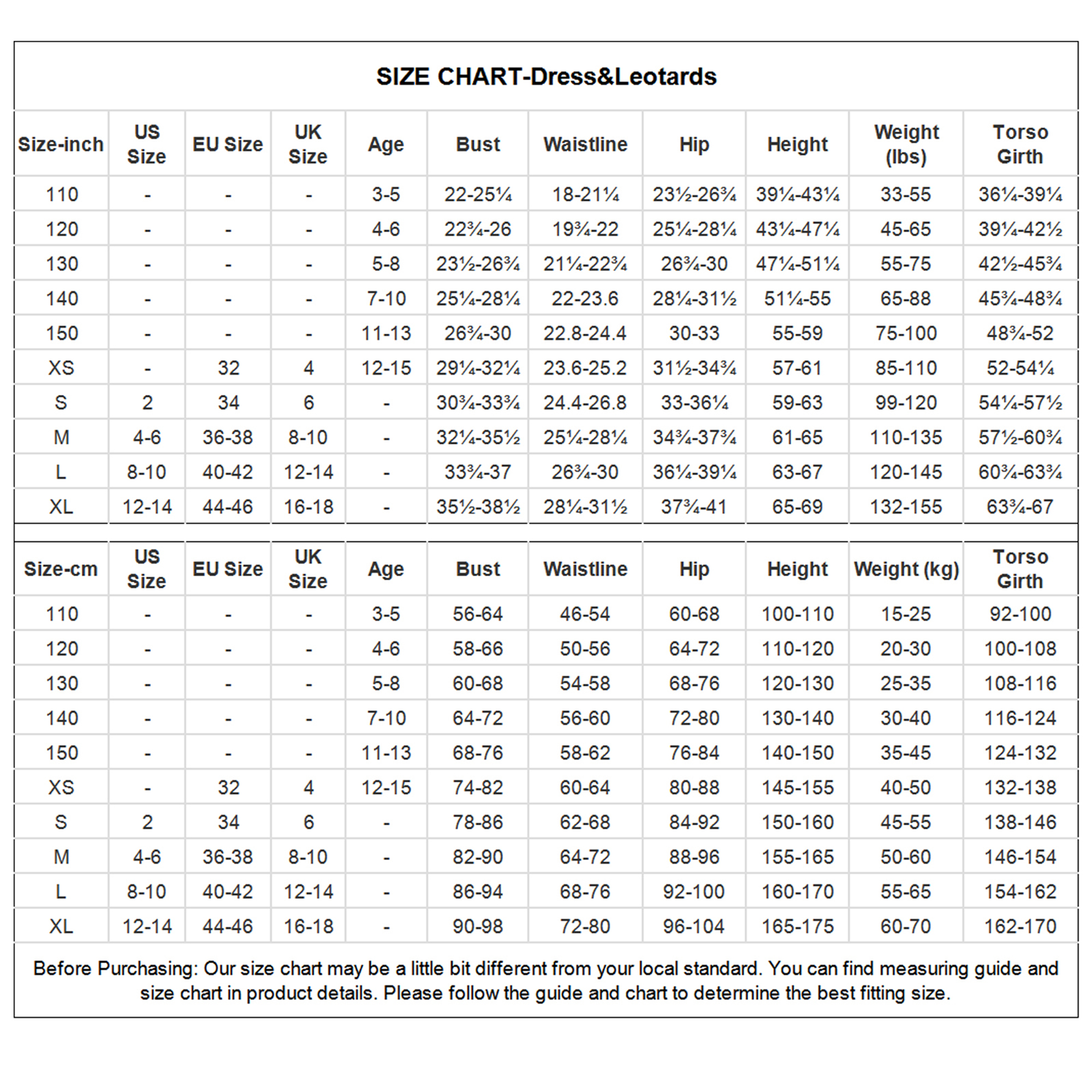 The suggested age and height is just for your reference. If your measurement is floating between two sizes, advise choosing the larger size. (Measurements shown in the size chart refer to item measurements, not body.)