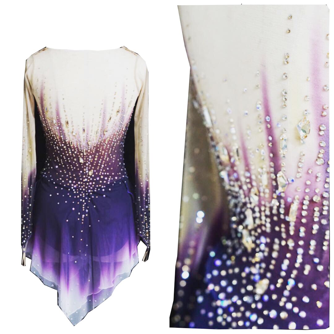 The fabric is mainly made of the newest pattern and quality elastic velour, high elasticity spandex, as well as the precise binding skill and the decoration diamond or the lace pattern. The fabric chosen is warmth kept, color fastness, sweat absorbed and color bright; brand new custom made ice skating dress with matching hair scrunchie included. All dresses have the underpants are attached.