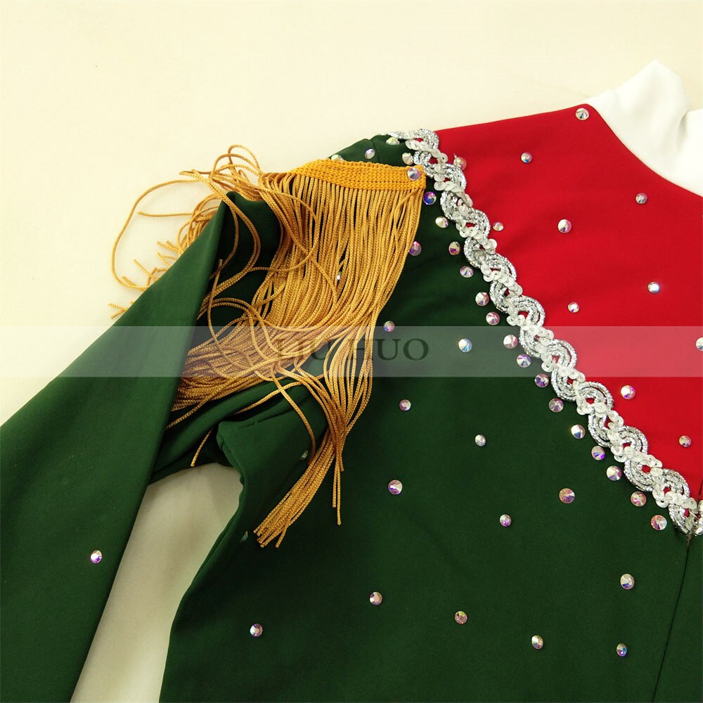 The fabric is mainly made of the newest pattern and quality elastic velour, high elasticity spandex, as well as the precise binding skill and the decoration diamond or the lace pattern. The fabric chosen is warmth kept, color fastness, sweat absorbed and color bright; brand new custom made ice skating dress with matching hair scrunchie included. All dresses have the underpants are attached.