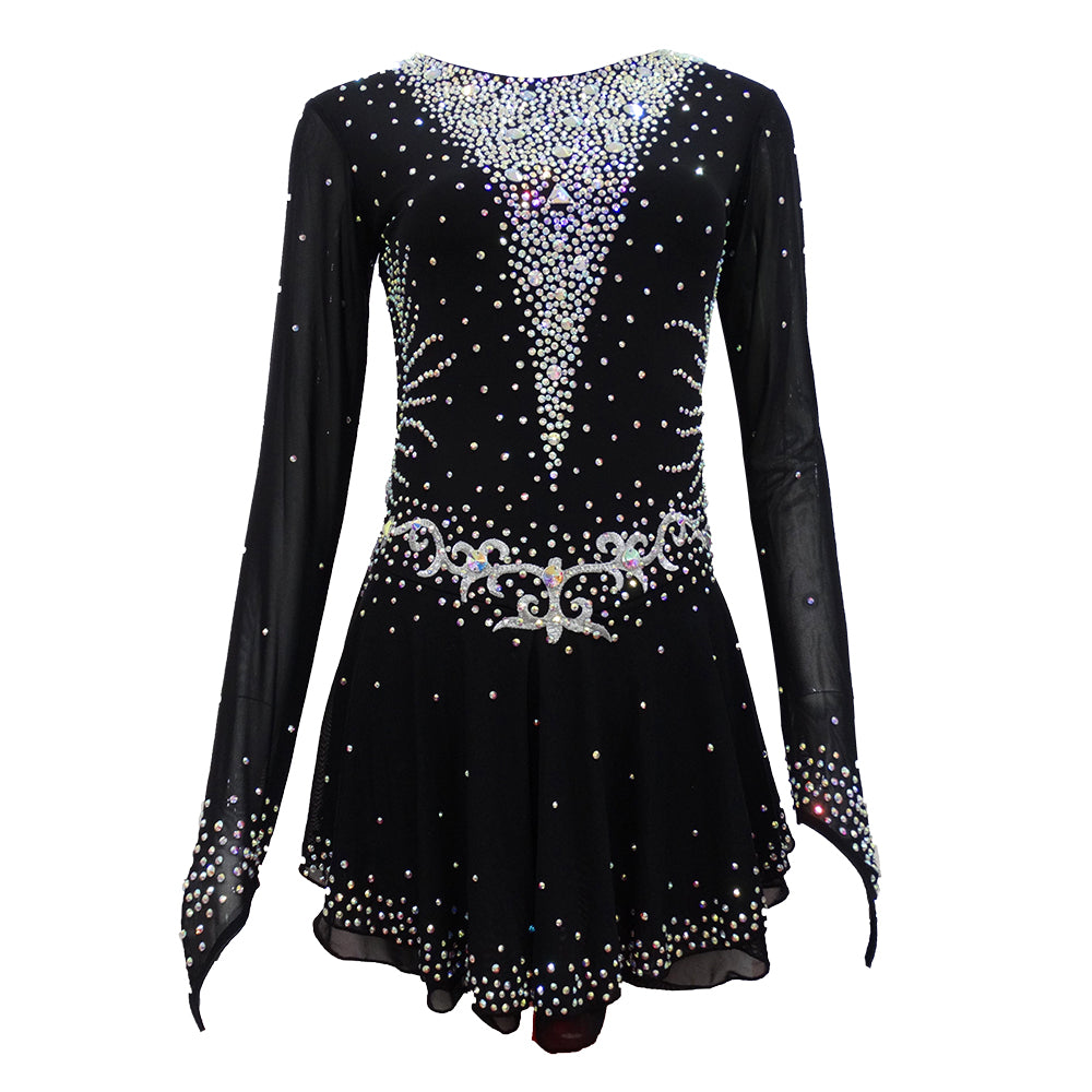 The fabric is mainly made of the newest pattern and quality elastic velour, high elasticity spandex, as well as the precise binding skill and the decoration diamond or the lace pattern. The fabric chosen is warmth kept, color fastness, sweat absorbed and color bright; brand new custom made ice skating dress with matching hair scrunchie included. All dresses have the underpants are attached.