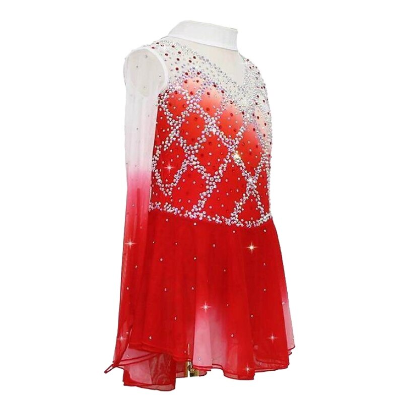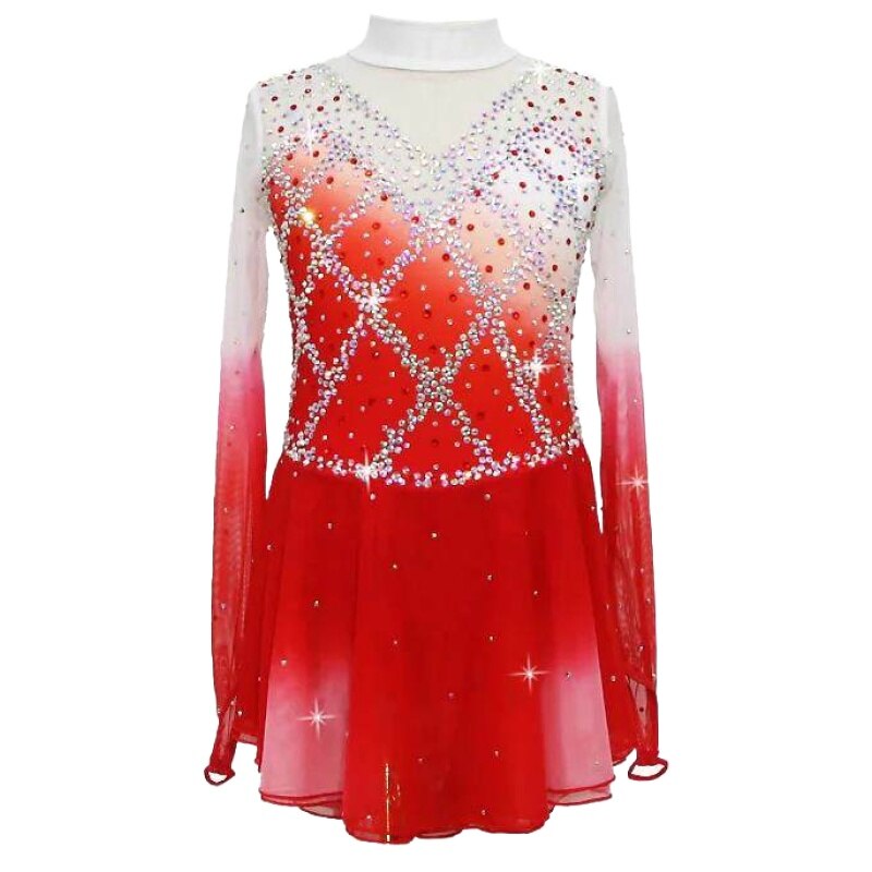 The fabric is mainly made of the newest pattern and quality elastic velour, high elasticity spandex, as well as the precise binding skill and the decoration diamond or the lace pattern. The fabric chosen is warmth kept, color fastness, sweat absorbed and color bright; brand new custom made ice skating dress with matching hair scrunchie included. All dresses have the underpants are attached.