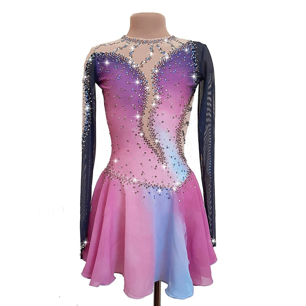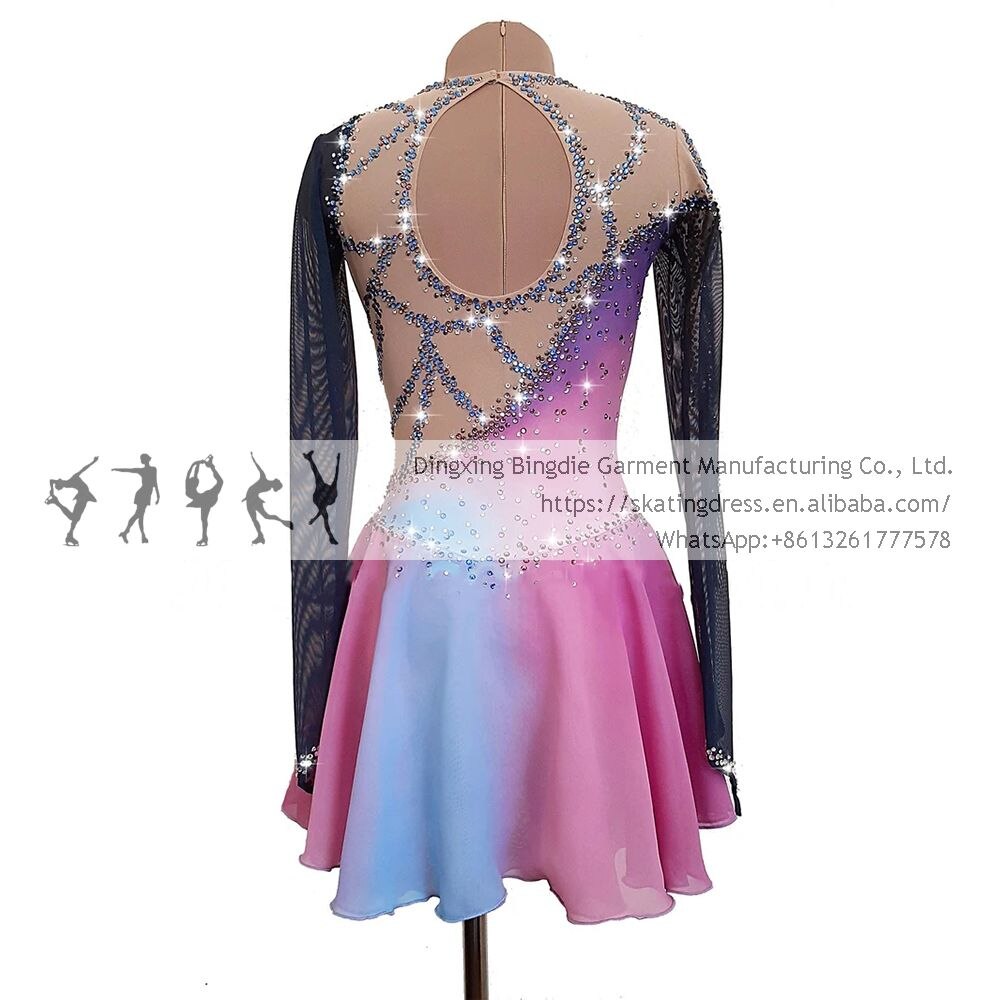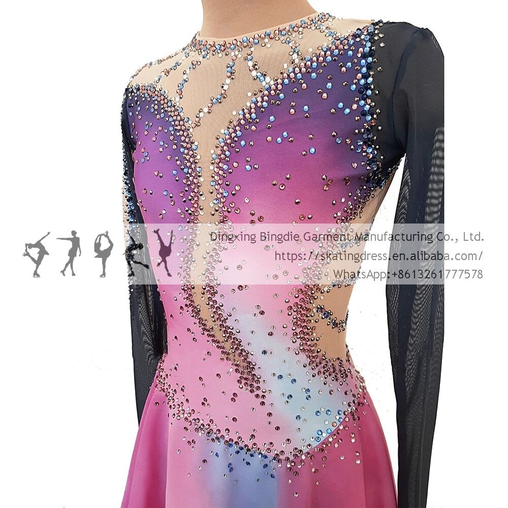 The fabric is mainly made of the newest pattern and quality elastic velour, high elasticity spandex, as well as the precise binding skill and the decoration diamond or the lace pattern. The fabric chosen is warmth kept, color fastness, sweat absorbed and color bright; brand new custom made ice skating dress with matching hair scrunchie included. All dresses have the underpants are attached.