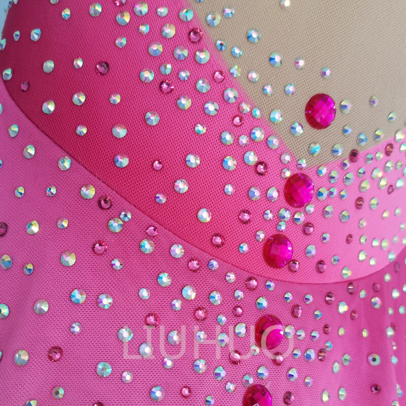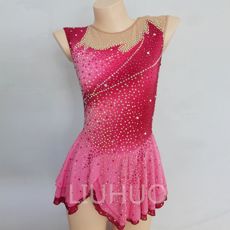 ❤ Features:This LIUHUO figure - skating dress is a vibrant and glamorous piece. It features a sleeveless design with a sheer mesh panel at the neckline. The dress showcases a striking gradient from deep red to bright pink. The entire surface is densely embellished with sparkling rhinestones, creating a dazzling effect. The flared skirt adds a sense of movement, making it an ideal choice for figure - skating performances, combining eye - catching aesthetics with functionality.