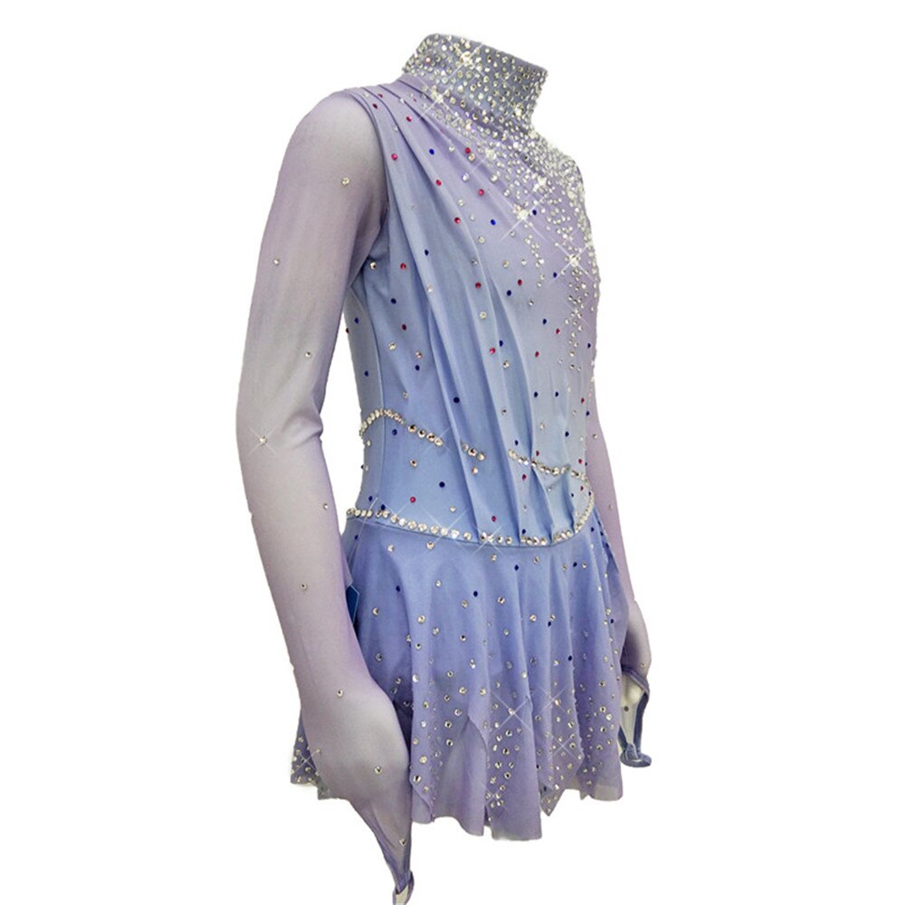 ❤ Features: Step into an ice - bound dream by wearing this LIUHUO figure - skating costume. With a light purple hue as its main tone, it resembles a dreamy mist, gently enveloping your time on the ice. Dense rhinestones cluster like stars around the high collar and long sleeves, outlining an elegant silhouette with their brilliance.