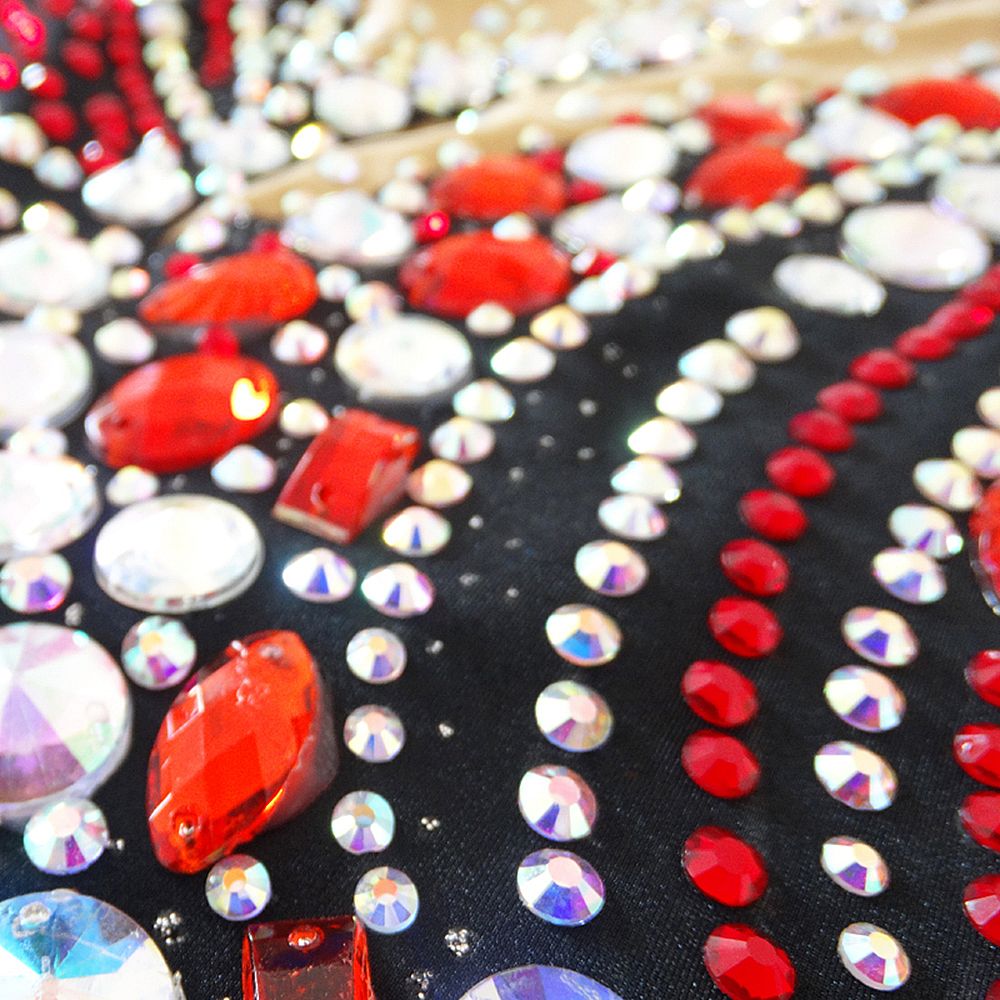 The dress was made by high quality spandex,with plenty of diamonds and  gem of acrylic. Mostly we sell the dress with crystals of  the Middle East.