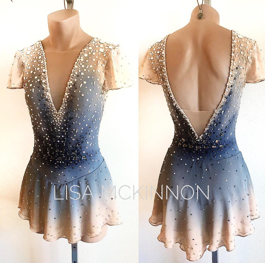 ❤ Features:This LIUHUO figure - skating dress is a harmonious blend of elegance and allure. It showcases a captivating gradient from deep blue at the top to a lighter, almost beige shade at the bottom of the skirt, creating a visually striking effect.