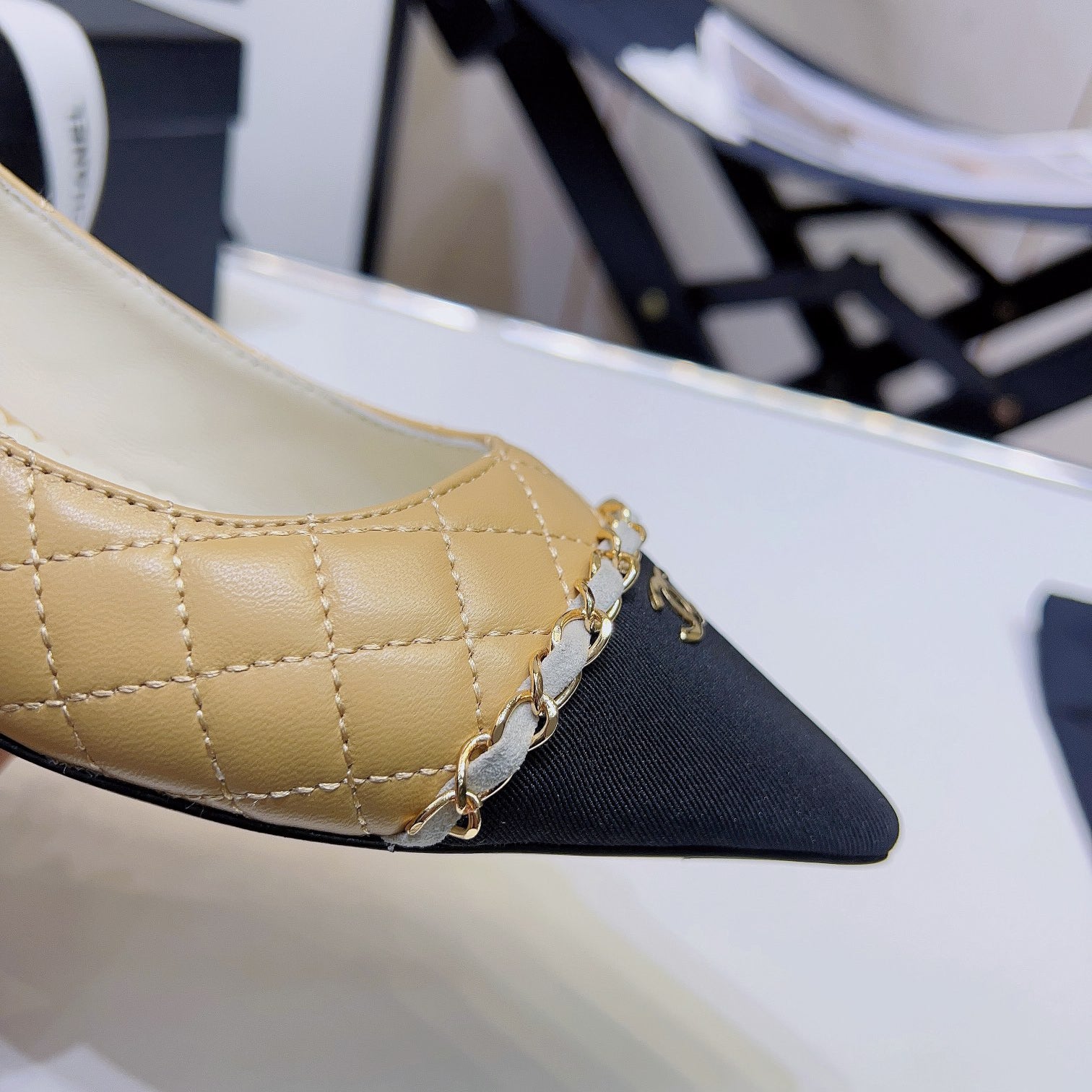 Pointed rhombus chain small high-heeled shoes XC16062302