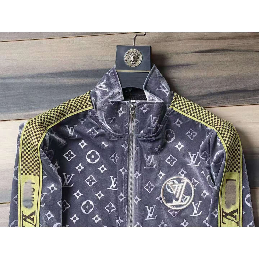 V Grey Embroidered Velvet Suit LXYMC23021505