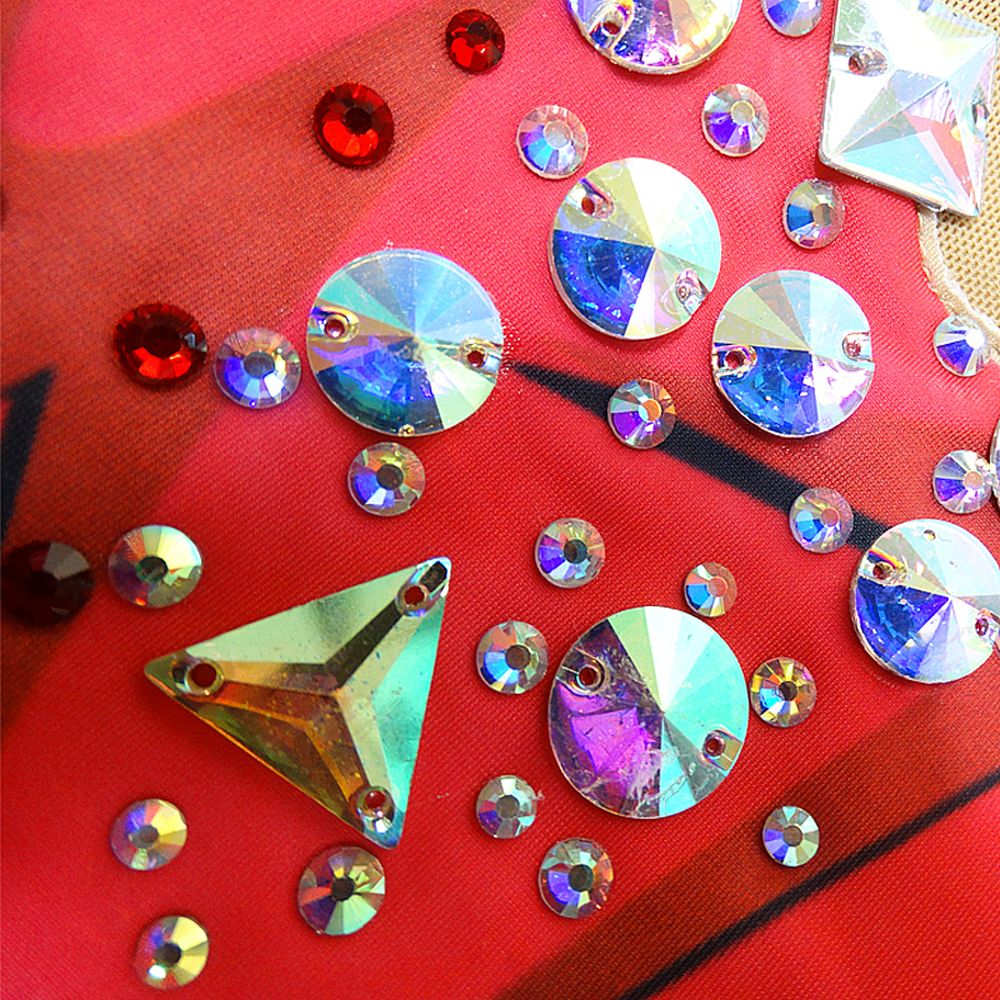 The dress was made by high quality spandex,with plenty of diamonds and  gem of acrylic. Mostly we sell the dress with crystals of  the Middle East.